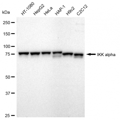 Reactivity: Human, Mouse, Rat Applications: WB, WB-KD Isotype: IgG Clone: 23GB765 Host Species: Rabbit Clonality: Monoclonal Synonyms: Component Of Inhibitor Of Nuclear Factor Kappa B Kinase Complex; IKK-Alpha; NFKBIKA; IKK1; IKKA; ..