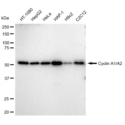 Reactivity: Human, Mouse, Rat Applications: WB, IF/IC, FCM, WB-KD Isotype: IgG Clone: 23GB3525 Host Species: Rabbit Clonality: Monoclonal Synonyms: CCNA2; Cyclin A2; CCN1; CCNA; Cyclin-A2; Cyclin-A; Cyclin A; CCNA1; Cyclin A1; CT146..