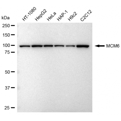 Reactivity: Human, Mouse, Rat Applications: WB, IF/IC, FCM, WB-KD Isotype: IgG Clone: 23GB2005 Host Species: Rabbit Clonality: Monoclonal Synonyms: MCM6; Minichromosome Maintenance Complex Component 6; Minichromosome Maintenance Def..