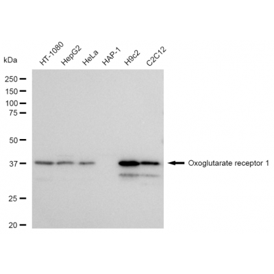 Reactivity: Human, Mouse, Rat Applications: WB, IF/IC, FCM, WB-KD Isotype: IgG Clone: 23GB4575 Host Species: Rabbit Clonality: Monoclonal Synonyms: OXGR1; Oxoglutarate Receptor 1; P2RY15; P2Y15; Alpha-Ketoglutarate Receptor 1; 2-Oxo..