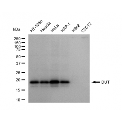 Reactivity: Human Applications: WB, FCM, WB-KD Isotype: IgG Clone: 23GB5240 Host Species: Rabbit Clonality: Monoclonal Synonyms: DUT; Deoxyuridine Triphosphatase; DUTP Pyrophosphatase; DUTPase; Deoxyuridine 5'-Triphosphate Nucleotid..