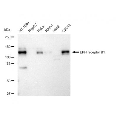 Reactivity: Human, Mouse Applications: WB, WB-KD Isotype: IgG Clone: 23GB5335 Host Species: Rabbit Clonality: Monoclonal Synonyms: EPHB1; EPH Receptor B1; EPHT2; HEK6; Neuronally-Expressed EPH-Related Tyrosine Kinase; Tyrosine-Prote..