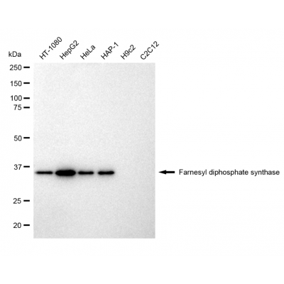 Reactivity: Human Applications: WB, IF/IC, FCM, WB-KD Isotype: IgG Clone: 23GB1395 Host Species: Rabbit Clonality: Monoclonal Synonyms: FDPS; Farnesyl Diphosphate Synthase; Farnesyl Pyrophosphate Synthetase, Dimethylallyltranstransf..
