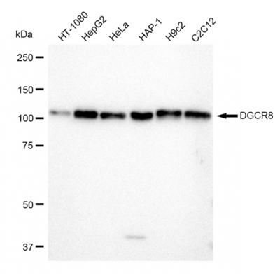 Reactivity: Human, Mouse, Rat Applications: WB, WB-KD Isotype: IgG Clone: 23GB1615 Host Species: Rabbit Clonality: Monoclonal Synonyms: DGCR8; DGCR8 Microprocessor Complex Subunit; DGCRK6; DiGeorge Syndrome Critical Region Gene 8; M..