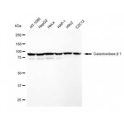 Reactivity: Human, Mouse, Rat Applications: WB, IF/IC, FCM, WB-KD Isotype: IgG Clone: 23GB1580 Host Species: Rabbit Clonality: Monoclonal Synonyms: GLB1; Galactosidase Beta 1; ELNR1; EBP; Elastin Receptor 1, 67kDa; Elastin Binding P..
