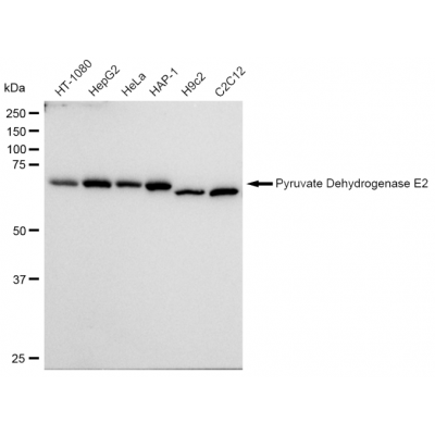 Reactivity: Human, Mouse, Rat Applications: WB, IF/IC, FCM, WB-KD Isotype: IgG Clone: 23GB1010 Host Species: Rabbit Clonality: Monoclonal Synonyms: Dihydrolipoamide S-Acetyltransferase; PBC;DLTA; PDC-E2; PDCE2; M2 Antigen Complex 70..