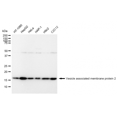 Reactivity: Human, Mouse, Rat Applications: WB, IF/IC, FCM, WB-KD Isotype: IgG Clone: 23GB1855 Host Species: Rabbit Clonality: Monoclonal Synonyms: Vesicle Associated Membrane Protein 2; Vesicle-Associated Membrane Protein 2; Synapt..