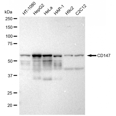 Reactivity: Human, Mouse, Rat Applications: WB, IF/IC, FCM, WB-KD Isotype: IgG Clone: 23GB1460 Host Species: Rabbit Clonality: Monoclonal Synonyms: BSG; Basigin (Ok Blood Group); EMMPRIN; Tumor Cell-Derived Collagenase Stimulatory F..