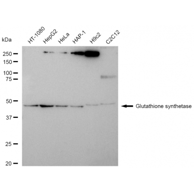 Reactivity: Human, Mouse, Rat Applications: WB, IF/IC, FCM, WB-KD Isotype: IgG Clone: 23GB4385 Host Species: Rabbit Clonality: Monoclonal Synonyms: GSS; Glutathione Synthetase; Glutathione Synthase; GSH Synthetase; EC 6.3.2.3; GSH-S..