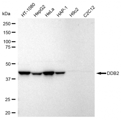 Reactivity: Human Applications: WB, IF/IC, FCM, WB-KD Isotype: IgG Clone: 23GB2805 Host Species: Rabbit Clonality: Monoclonal Synonyms: DDB2; Damage Specific DNA Binding Protein 2; UV-Damaged DNA-Binding Protein 2; DDB P48 Subunit; ..