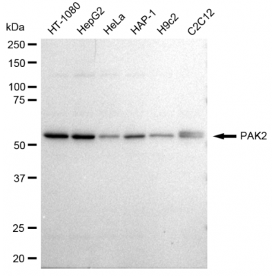 Reactivity: Human, Mouse, Rat Applications: WB, IF/IC, FCM, WB-KD Isotype: IgG Clone: 23GB2595 Host Species: Rabbit Clonality: Monoclonal Synonyms: PAK2; P21 (RAC1) Activated Kinase 2; PAK65; S6/H4 Kinase; P21 Protein (Cdc42/Rac)-Ac..