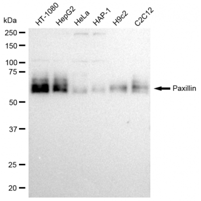 Reactivity: Human, Mouse, Rat Applications: WB, IF/IC, FCM, WB-KD Isotype: IgG Clone: 23GB2690 Host Species: Rabbit Clonality: Monoclonal Synonyms: PXN; Paxillin; Testicular Tissue Protein Li 134Immunogen: A synthesized peptide deri..