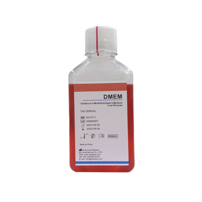 Dulbecco's Modified Eagle's Medium (DMEM) is a modified Eagle Basal cell medium (BME) containing four times the concentration of amino acids and vitamins. This product is a low-glucose type (1000 mg/L) and supports the cultivation of various mammalia..