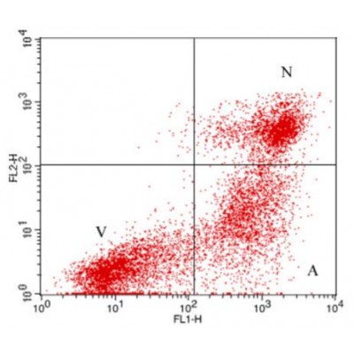 Apoptotic, Necrotic & Healthy Cells Detection Kit provides a convenient assay to detect apoptotic, necrotic, and total cells within the same cell population by flow cytometry or fluorescence microscopy. This kit contains three-color reagent:..