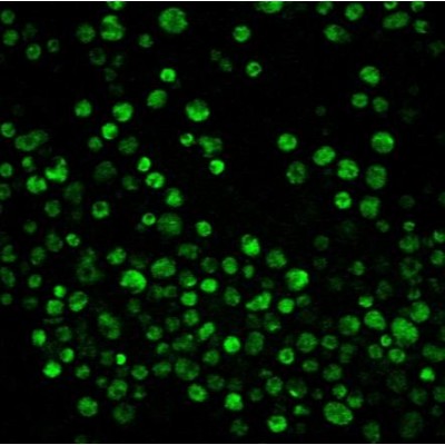CFDA, SE is a fixable-cell-permeant, fluorescein-based tracer for very long-term cell labeling. CFDA, SE passively diffuse into cells and it is nonfluorescent until the acetate groups are cleaved by intracellular esterases to yield the highly fluores..