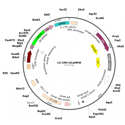 Product Category: Premade recombinant lentivirus; LV-CMV-GCaMP6f; CMV-GCaMP6f Lentivirus Description: GCaMP is a genetically encoded calcium indicator (GECI) and created from a fusion of green fl..