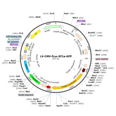 Product Category: Premade recombinant lentivirus; LV-CMV-fLuc-EF1α-GFP; LV-CMV-Luciferase-EF1α-GFP; CMV-Luc-EF1α-GFP lentivirus Description: Lentivirus CMV-fLuc-EF1α-GFP is pre-made lentivirus which ..