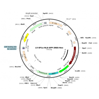 Product Category: Premade recombinant lentivirus; LV-EF1α-NLS-GFP-Neo; LV-EF1A-NLS-GFP-Neo; EF1α-NLS-GFP-Neo Lentivirus; EF1A-NLS-GFP-IRES-Neo Lentivirus Description: Lentivirus EF1α-NLS-GFP-IRES-Neo..