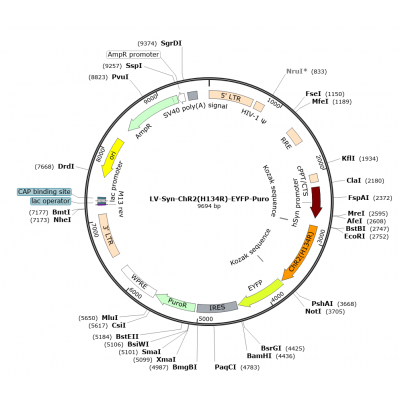 Product Category: Premade recombinant lentivirus; LV-Syn-hChR2(H134R)-EYFP-IRES-Puro; LV-Synapsin-hChR2(H134R)-EYFP-IRES-Puro; LV-Syn-hChR2(H134R)-EYFP; LV-Synapsin-hChR2(H134R)-EYFP; Syn-hChR2(H134R)-EYFP-IRES-Puro Lentivirus; Syn-hChR2(H13..