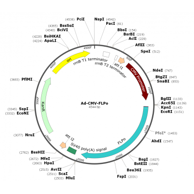 Product Category: Human adenovirus Type5 (dE1/E3), FLPo recombinase adenovirus; Ad-CMV-FLPo; Ad-FLPo Gene Name:FLPo recombinase Summary: ;FLP originally identified from Saccharomyces cerevisiae is a site-..