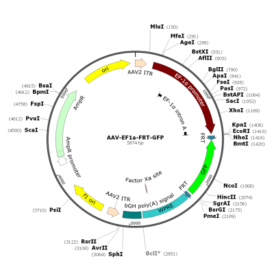 Product Category: Premade recombinant AAV; AAV-EF1α-FRT-GFP; AAV1-EF1α-FRT-GFP; AAV-EF1alpha-FRT-GFP; AAV1-EF1alpha-FRT-GFP Description: AAV1-EF1α-FRT-GFP is a pre-packaged rAAV in serotype 1 (capsid..