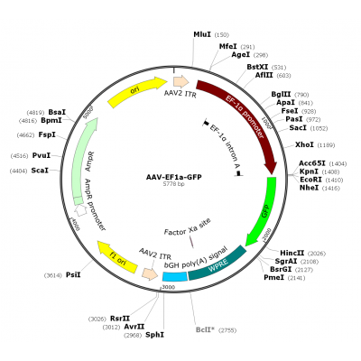Product Category: Premade recombinant AAV; AAV-EF1α-GFP; AAV-EF1a-GFP; AAV1-EF1α-GFP Description: AAV1-EF1α-GFP is a pre-packaged rAAV in serotype 1 (capsid from AAV serotype 1 and 2xITR from AAV ser..