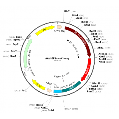 Product Category: Premade recombinant AAV; AAV-EF1α-mCherry; AAV-EF1a-mCherry; AAV1-EF1α-mCherry Description: AAV1-EF1α-mCherry is a pre-packaged rAAV in serotype 1 (capsid from AAV serotype 1 and 2x..