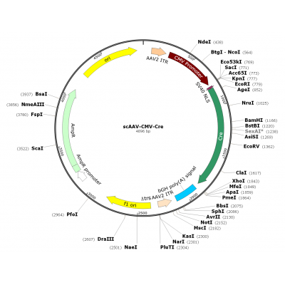Product Category: Premade recombinant self-complementary AAV; scAAV-CMV-Cre; scAAV-Cre; scAAV2-CMV-Cre Description: Description: scAAV2-Cre is a pre-packaged self-complementary rAAV in serotype 2 (wi..
