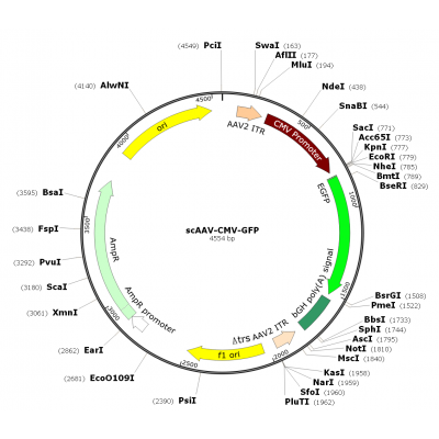Product Category: Premade recombinant self-complementary AAV; scAAV-CMV-GFP; scAAV-GFP; scAAV2-CMV-GFP Description: scAAV2-GFP is a pre-packaged self-complementary AAV in serotype 2 (with capsid from..