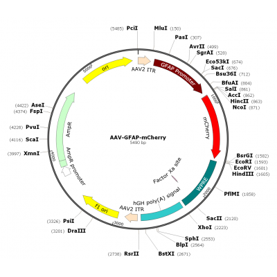 Product Category: Pre-made recombinant AAV; AAV-GFAP-mCherry; AAV5-GFAP-mCherry Description: AAV5-GFAP-mCherry is a pre-packaged rAAV in serotype 5 (with capsid from AAV serotype 5 and 2xITR from AAV..