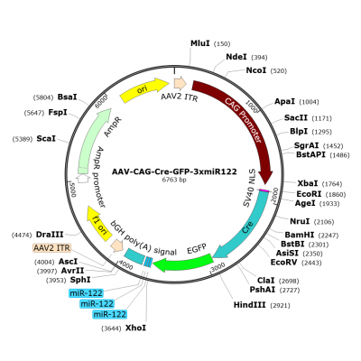 Product Category: Premade recombinant AAV; AAV-CAG-Cre-GFP-3xmiR122; AAV(BI30)-CAG-Cre-GFP-3xmiR122; AAV-CBA-Cre-GFP-3xmiR122; AAV(BI30)-CBA-Cre-GFP-3xmiR122 Description: AAV(BI30)-CAG-Cre-GFP-3xmiR1..