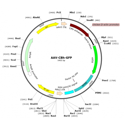 Product Category: Premade recombinant AAV; AAV-CBh-GFP; AAV(Myo2A)-CBh-GFP; AAV(Myo2A)-CBh-GFP Description: AAV(Myo2A)-CMV-GFP is a pre-packaged rAAV in serotype Myo2A (a mutant serotype from AAV ser..
