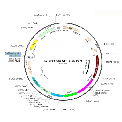 Product Category: Premade recombinant lentivirus; LV-EF1α-Cre-GFP-Puro; LV-EF1α-Cre-GFP-IRES-Puro; LV-EF1A-Cre-GFP-Puro; LV-EF1A-Cre-GFP-IRES-Puro; EF1A-Cre-GFP Lentivirus; EF1α-Cre-GFP Lentivirus Description..