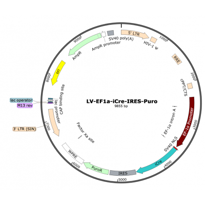 Product Category: Premade recombinant lentivirus; LV-EF1α-iCre-Puro; LV-EF1A-iCre-Puro; LV-EF1α-iCre-IRES-Puro; EF1A-iCre-Puro Lentivirus; EF1α-iCre-Puro Lentivirus Description: Cre recombinase i..